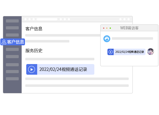 服務結束后,視頻自動保存到系統中,在客戶歷史軌跡和聊天對話框都能找到,點擊即可回看。