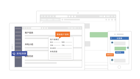 同一套系統(tǒng),通過PC和APP均可登陸,打通兩端數據、業(yè)務無縫對接,呼叫中心、在線客服、短信、工單、質檢等功能均可實現,使用體驗方便快捷,與PC端保持一致。