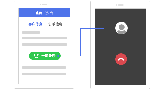 坐席需在 App 中外呼用戶電話,即可從 App 調起小程序發(fā)起外呼。